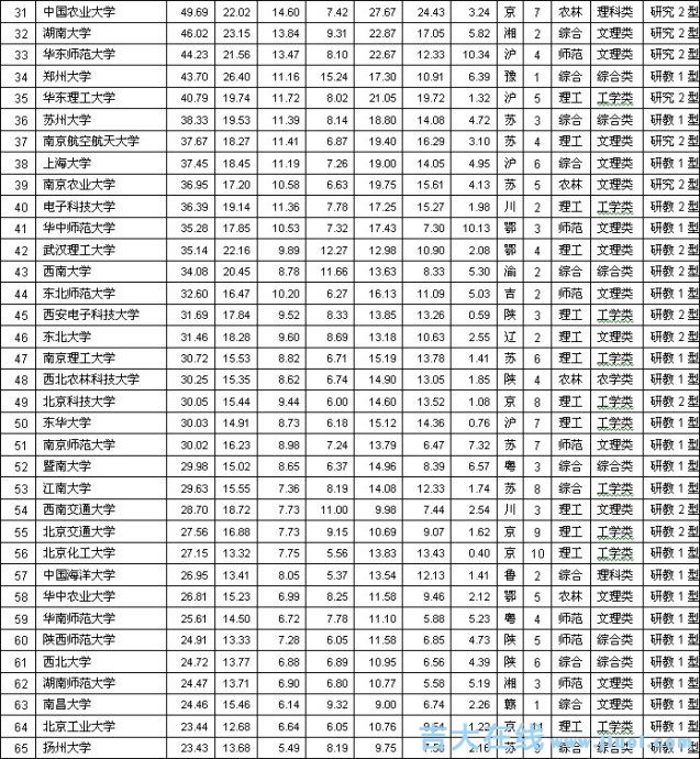 各学科等级说明:将各大学相同学科得分降序排列,前2%为A++,2~4%(含4%,以下同)为A+,4%~10%为A;10%~20%为B+,20%~30%为B;30%~40%为C+,40%~50%为C;50%~60%为D+,60%~70%为D;70%~82%为E+,82%~100%为E。