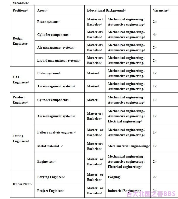 MAHLE Group For more than 80 years, MAHLE has alwaysbeen among the most prominent international manufacturers of high-qualitycomponents for the automotive and engine industry. Revolutionary innovationshave turned MAHLE into a reliable and successful partner for its customers andone of the 30 largest automotive suppliers in the world. Now MAHLE has been atop 3 suppliers for piston systems, cylinder components, valve train systems,air management systems and liquid management systems. Today, the MAHLE Group supplies almost allautomobile manufacturers worldwide with a comprehensive range of high-qualityproducts. MAHLE has about 49000 employees working at over 100 locations on 4continents. About 3,000 development engineers in 8 R&D centers inStuttgart, Northampton, Detroit (Farminton Hills, Novi), Tokyo (Kawagoe,Okegawa), São Paulo (Jundiai) and – from 2006 on in Shanghai – are working on trend-setting concepts, products and systems to meetour customers’ demands forecologically and economically practical solutions. In China, MAHLE has set up plants in 8cities: Chongqing, Guangzhou, Nanjing, Macheng, Changchun, Shanghai, Tianjinand Yingkou, producing a wide range of components and systems for the internalcombustion engine and its peripherals, including pistons, piston rings,bearings, valves, air intake systems, oil and fuel filter modules and othercomponents in their 12 plants in China. At the same time more plants andproducts are to come in the near future. MAHLE Technologies Holding (China)Co., Ltd. MAHLE Technologies Holding (China) Co., Ltd. (MTC) centralizes the keyfunctions such as Product Development, Sales, Human Resources, IT and Financefor all MAHLE production plants currently operating in China. And the Technical Center ofMTC covers product development for the local market, with integrated design,calculation functions, component and engine testing facilities, and electronic,chemical and metallographic laboratories. Ever since its foundation in Shanghai in 2006 as the regional headquarters, MTC hasbeen in pursuit of highly qualifiedstaff to fulfill its rapid business development in China. If you’re looking for a company with anestablished reputation, great momentum, and a promising future, here we are!