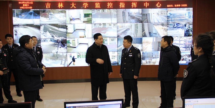 李元元一行来到保卫处监控指挥中心慰问安全保卫系统工作人员。他与正在值班的工作人员一一握手,感谢他们假期坚守工作岗位。李元元详细了解假期校园安全保卫工作,希望坚守岗位的工作人员加强视频监控,把校园安全稳定的责任记在心中、扛在肩上,确保在校师生度过一个平安稳定的和谐年,并嘱咐保卫处工作人员注意休息,保重身体。