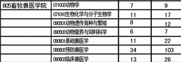2011吉林大学畜牧兽医学院各专业考研报考与招生人数统计