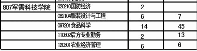 2011吉林大学军需科技学院各专业考研报考与招生人数统计