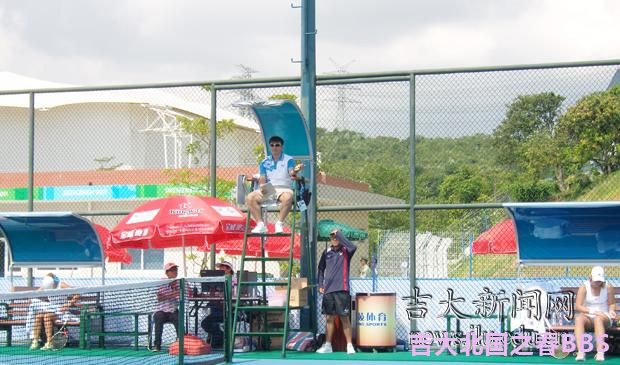 于是未老师在第26届大运会女子网球双打比赛现场担任主裁工作